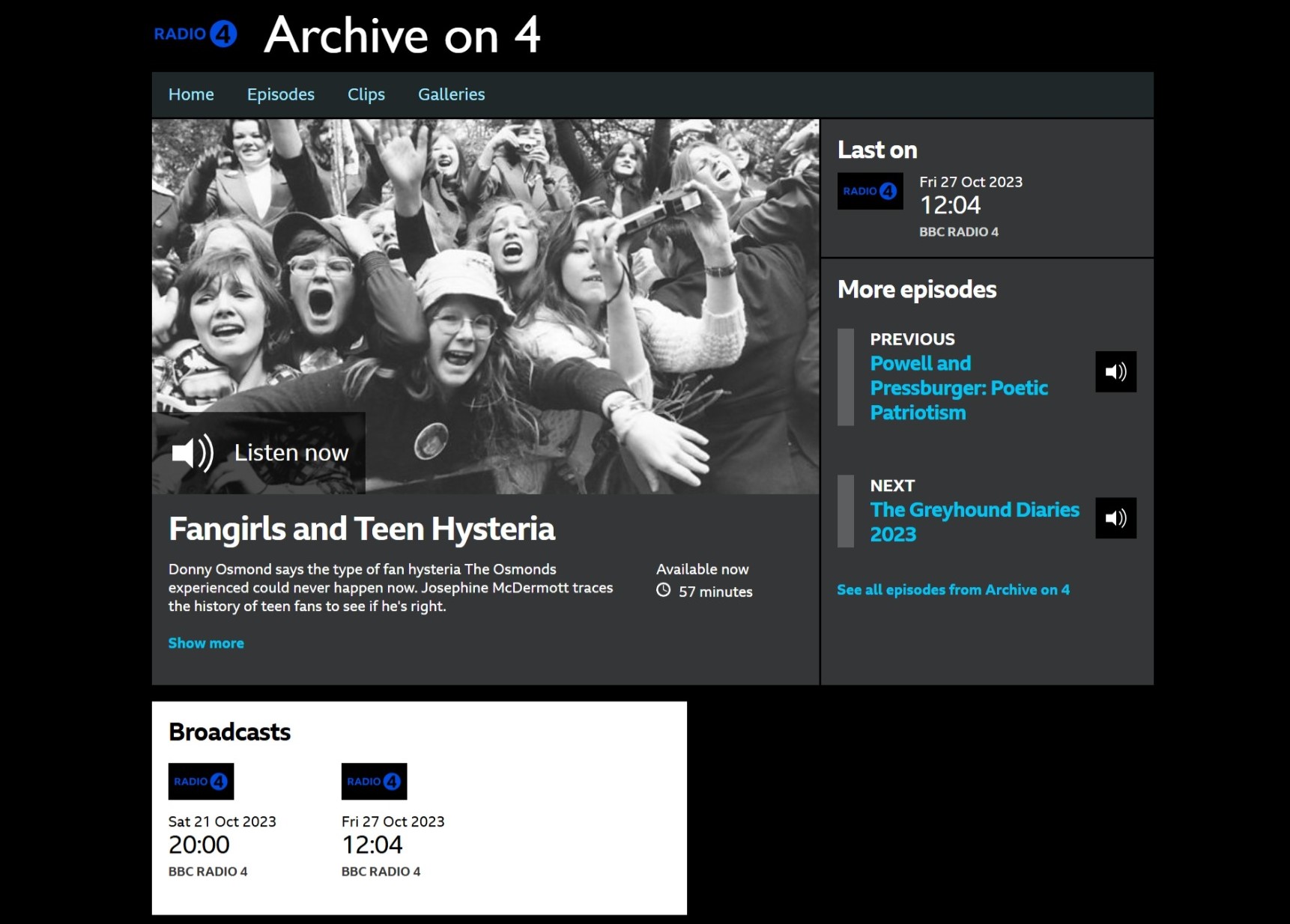 BBC Radio 4: Archive on 4: Fangirls and Teen Hysteria